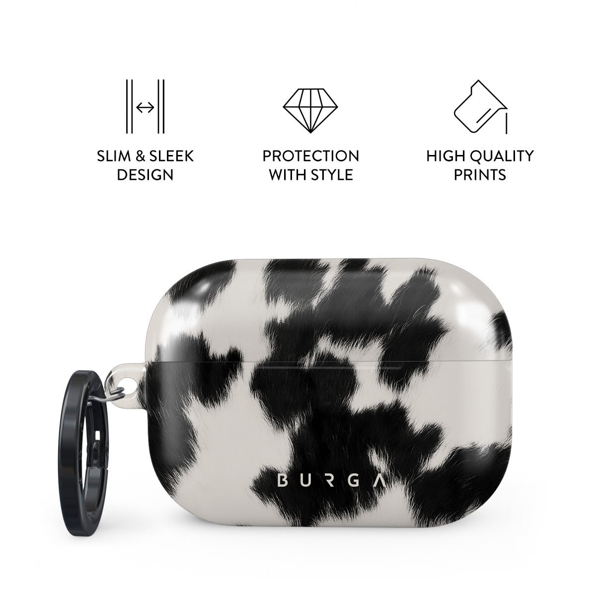 Your Airpods deserves to look cute and stay protected at all times. and our Achromatic Apple Airpods Pro 2 case cover will help you keep it safe and sound. The cow print in black and white is both daring and classic. making it the perfect addition to your accessory collection.