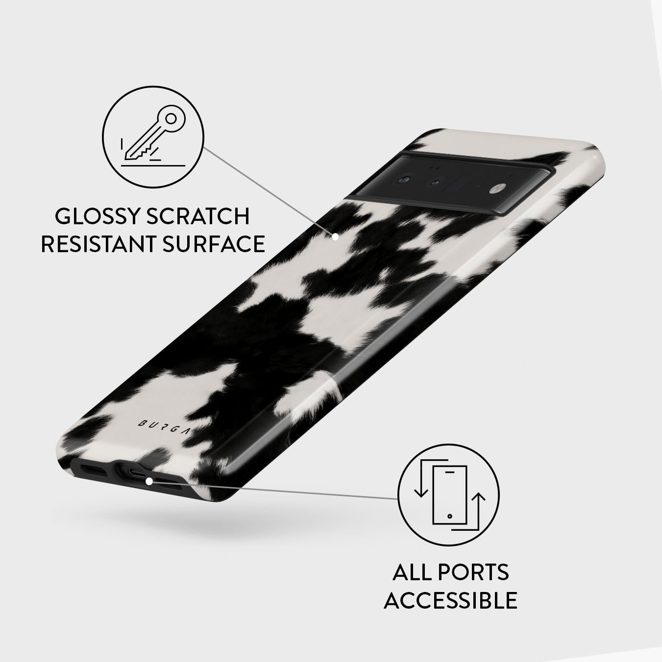 Your phone deserves to look cute and stay protected at all times. and our Achromatic Google Pixel 6 Pro phone case will help you keep it safe and sound. The cow print in black and white is both daring and classic. making it the perfect addition to your accessory collection.